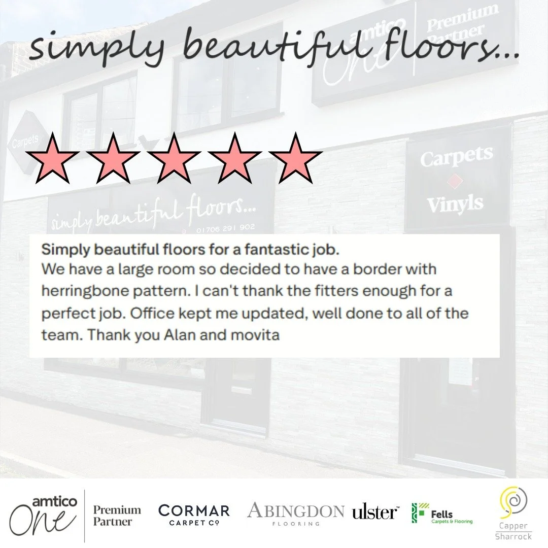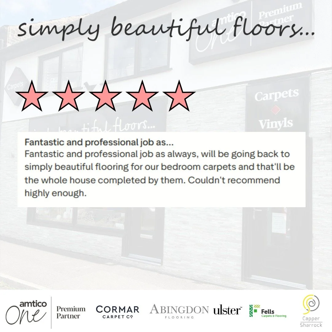 “ This is second time we have used Simply Beautiful floors, our previous home we had it fitted 20 years ago and it was still looking amazing when sold the house. This time we are even more delighted, we had two bedrooms, open plan living and carpet runner and carpet on the landing. The fitters Darren, Cameron ‘Alan and Charlie worked so hard and their attention to detail was amazing. Thank you also to Peter who came to advice on design he nailed it, I would not hesitate in recommending this company”